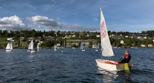 In zwei Gruppen haben wir bei schönster Stimmung mit leichtem Wind perfekt trainieren können. Die Neuen die übten die einzelnen Segelkurse und tasteten sich das erste Mal an den am-Wind-Kurs, die Übrigen trainierten etwas Taktik bei einem Team-Race und lernten andere vom Wind abdecken.