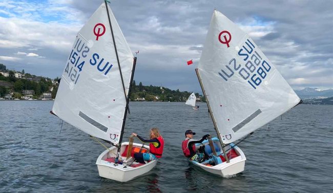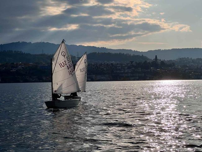 Der Wind war heute eher flau, aber es fanden sich doch immer Stellen auf dem See mit Wind. Philipp hat für einmal Eirini und Milo kurz begleitet und konnte so auch ein paar Filme von den neuesten Opti-Seglerinnen und -Seglern machen.