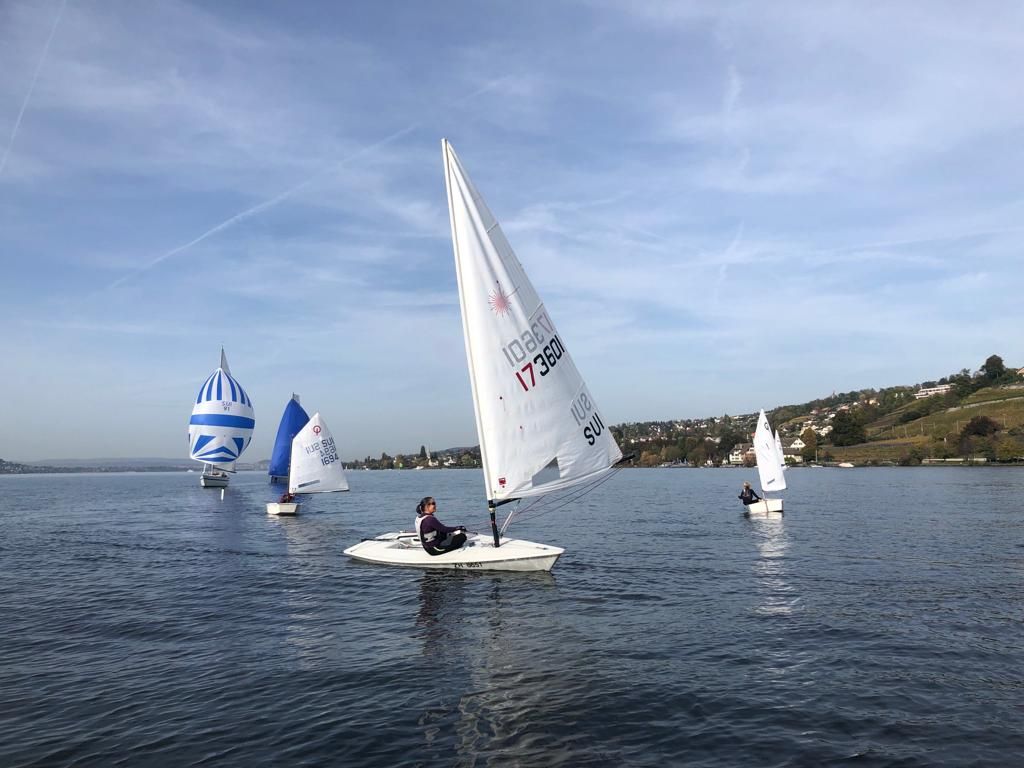 Am Samstagmittag trafen sich im SYH 28 Erwachsene und 12 Junioren zum seglerischen Jahresabschluss dem Absegeln. 7 Yachten, 7 Jollen und 6 Optimisten nahmen an diesem sehr schönen Spätherbsttag teil, eine sehr grosse Beteiligung. Nach der Wettfahrtbesprechung wurde gleich gestartet, um den noch vorhandenen Wind auszunutzen. Zuerst starteten die Yachten ( zwei Runden grosser Liniarkurs ) dann die Jollen ( zwei Runden kleiner Liniarkurs ) und zum Schluss die Optimisten ( eine Runde kleiner Linearkurs ). Der leichte Westwind wurde zum Schluss immer schwächer. Die letzten Optimisten hatten nur noch sehr wenig Wind um ins Ziel zu gelangen.