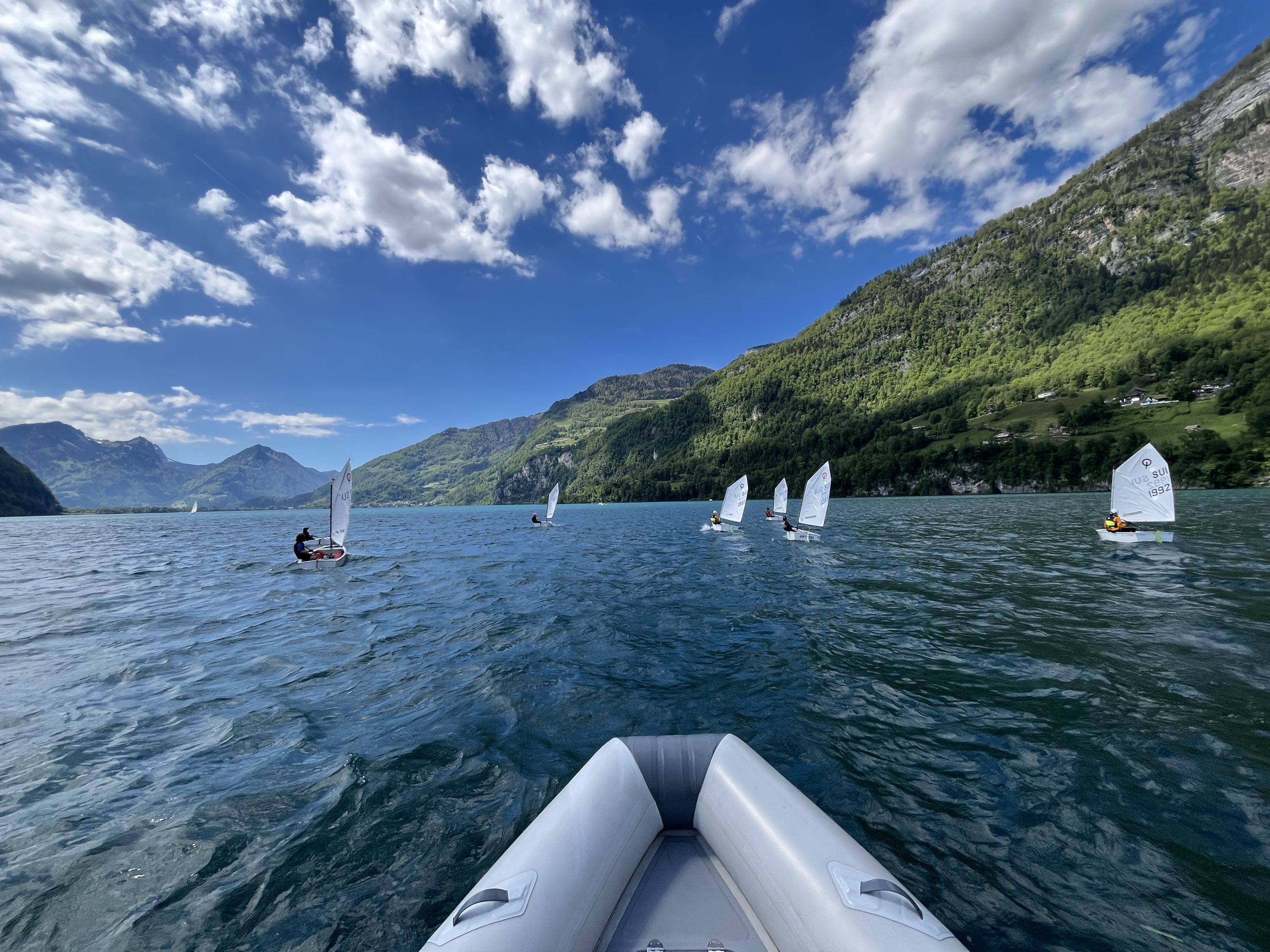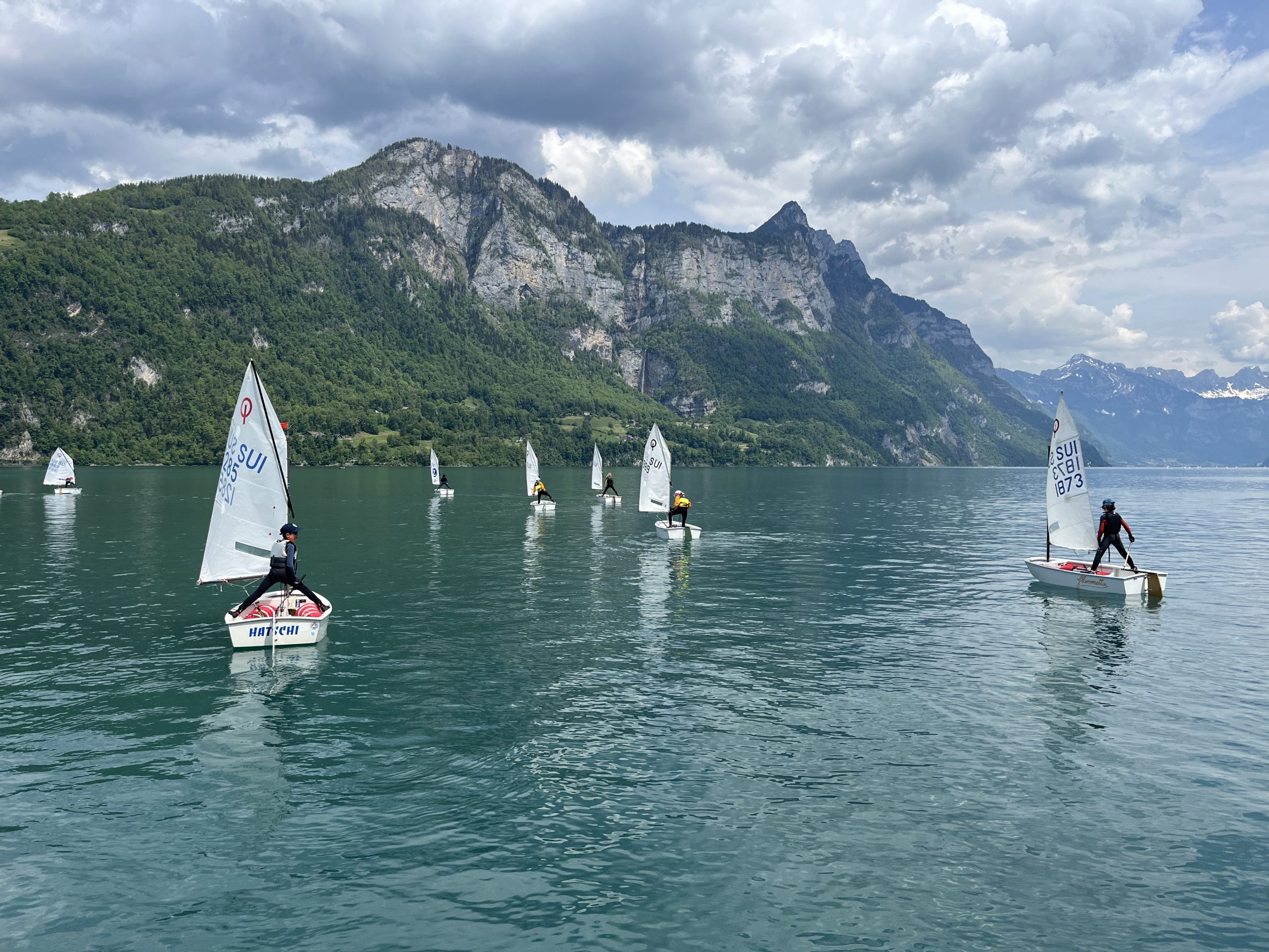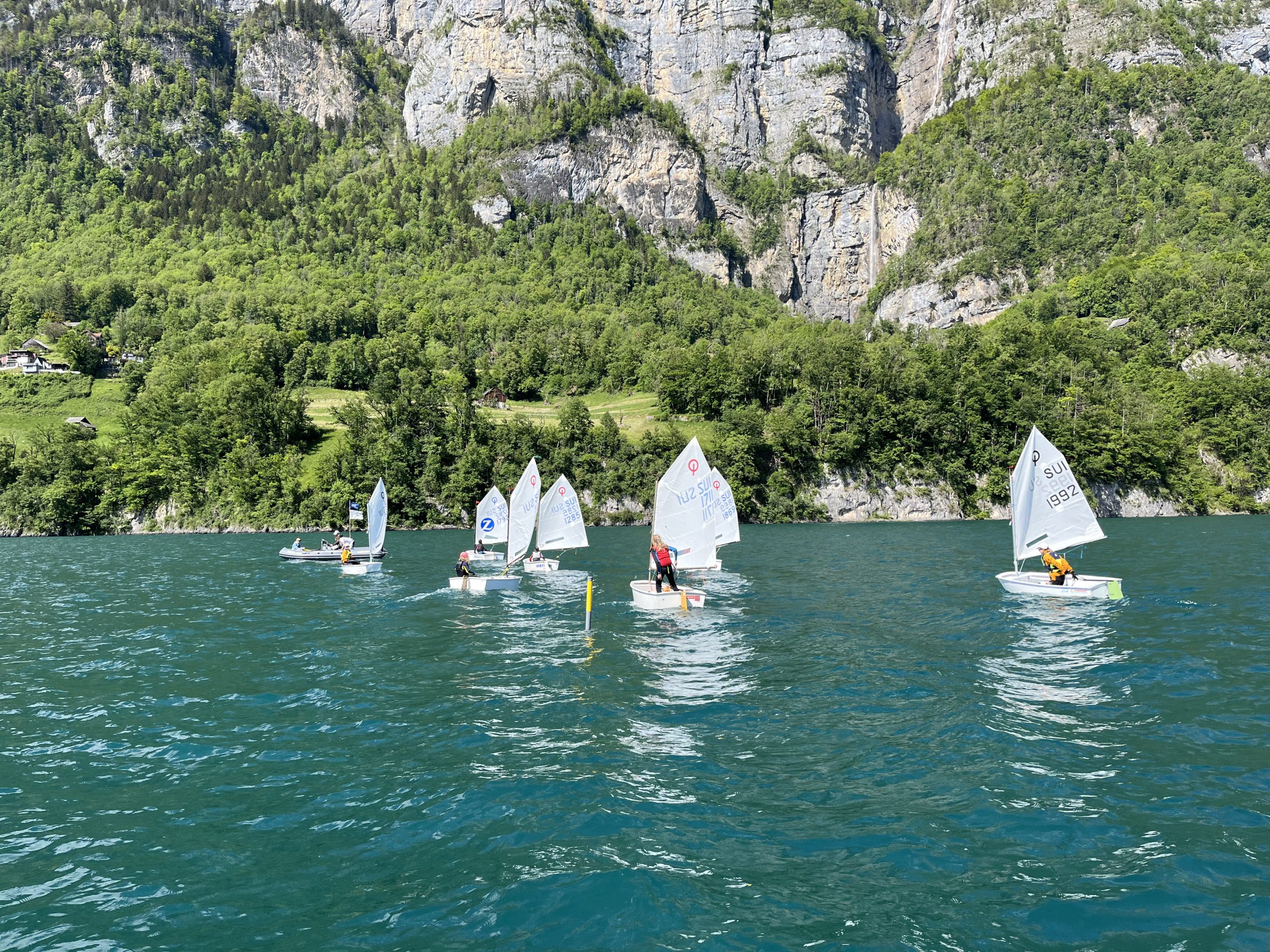 Die Idee des Walensee-Optilagers ist es, diejenigen Kids, die schon mindestens ein Jahr segeln, für die ersten Regio-Regatten vorzubereiten. Da Armin und ich mit unserer Gruppe zuerst an den Basics feilen mussten (hart-am-Wind-segeln, Rollwende, Rollhalse), blieb – nicht zuletzt weil wir auf den sonst verlässlichen Wind am Walensee nicht immer zählen konnten – für das Regattatraining nicht mehr immens viel Zeit.