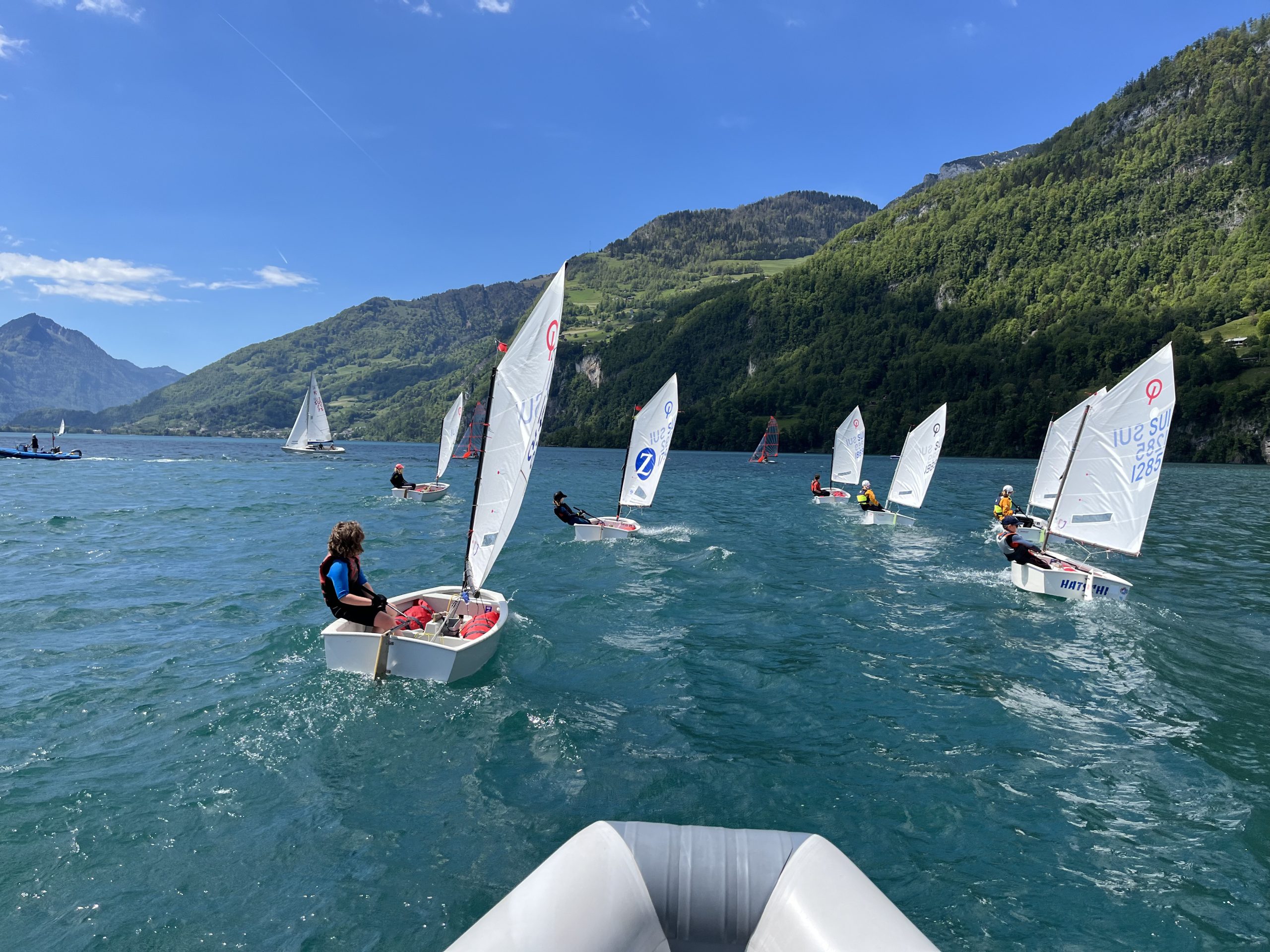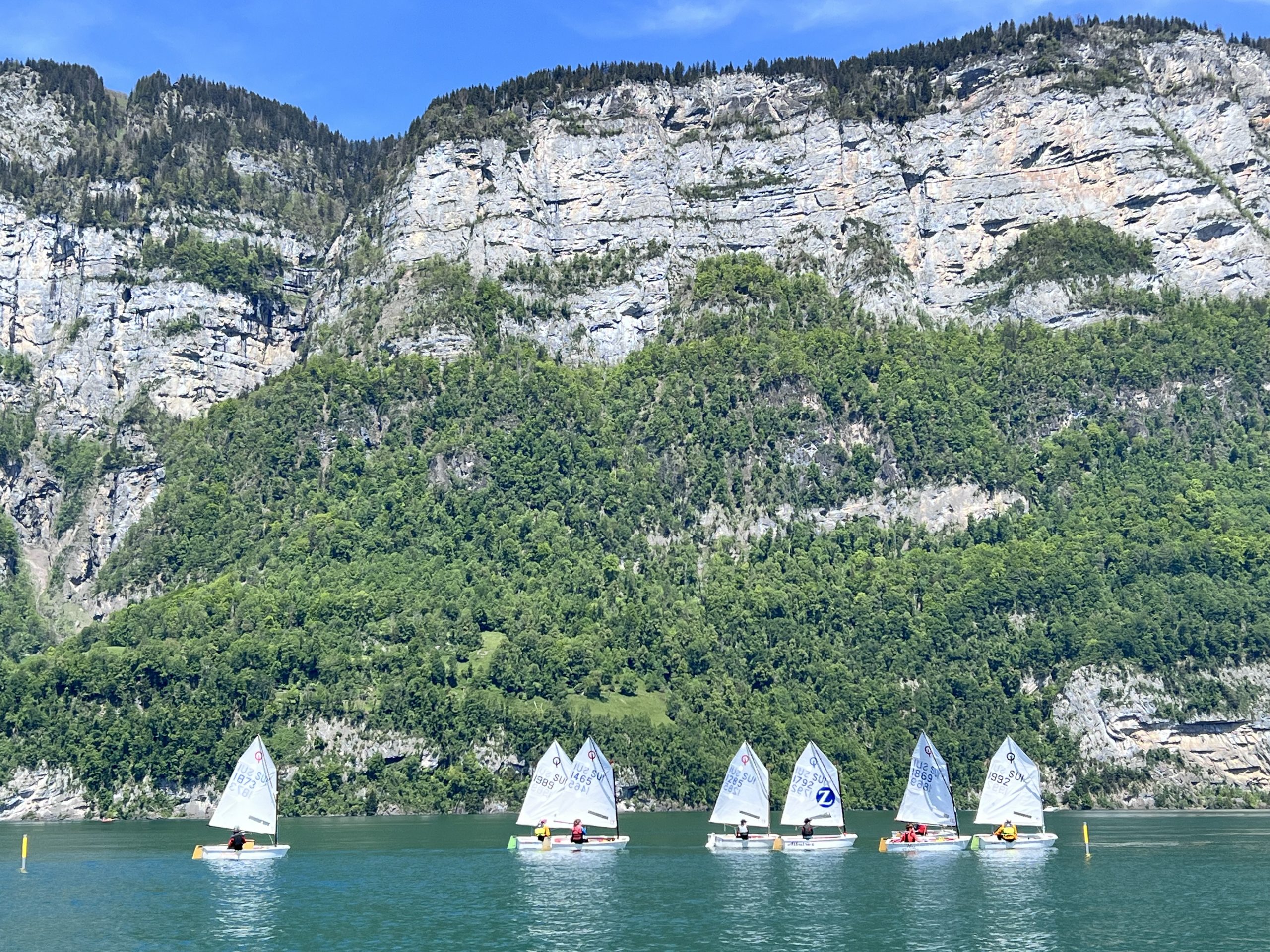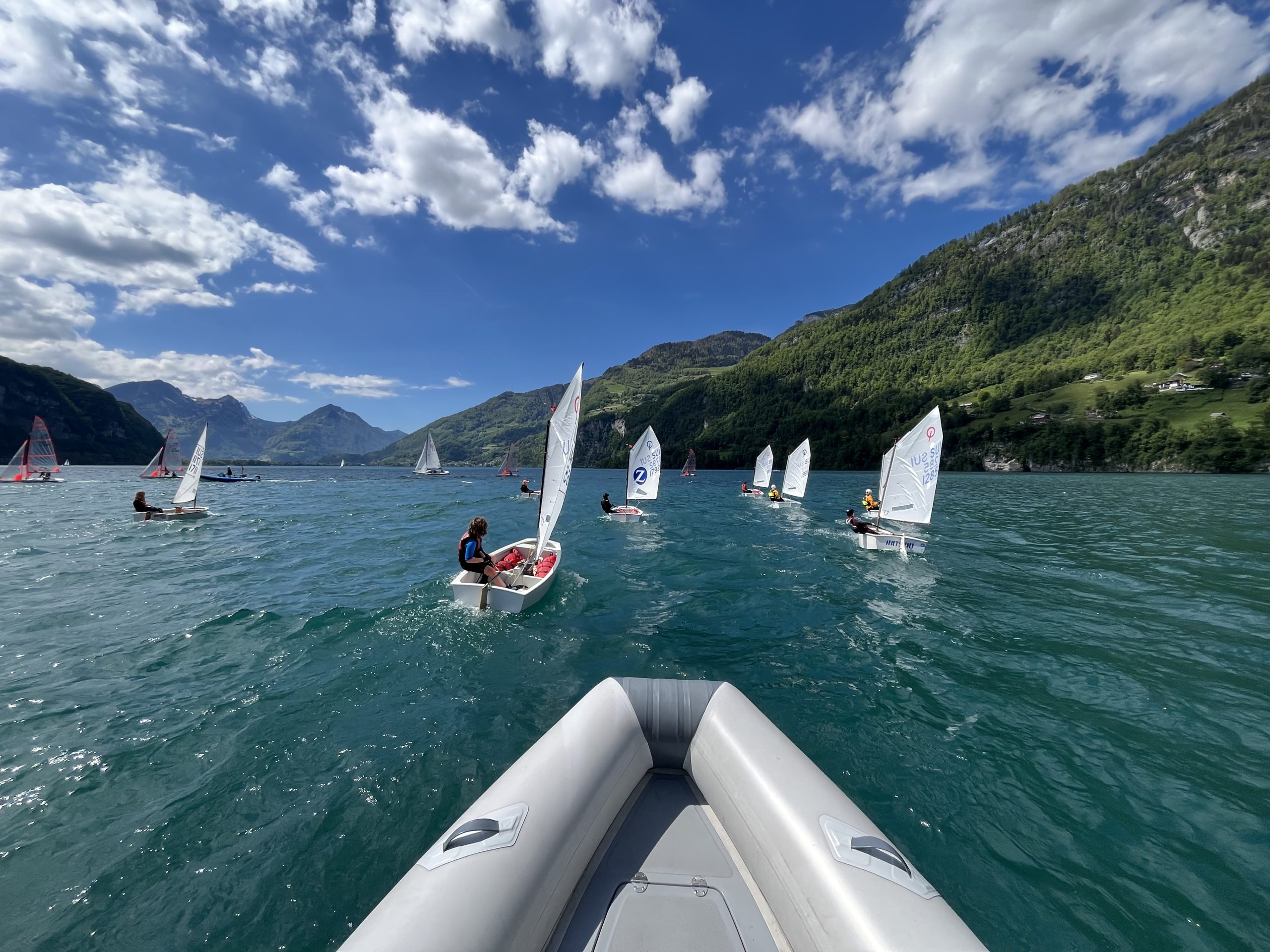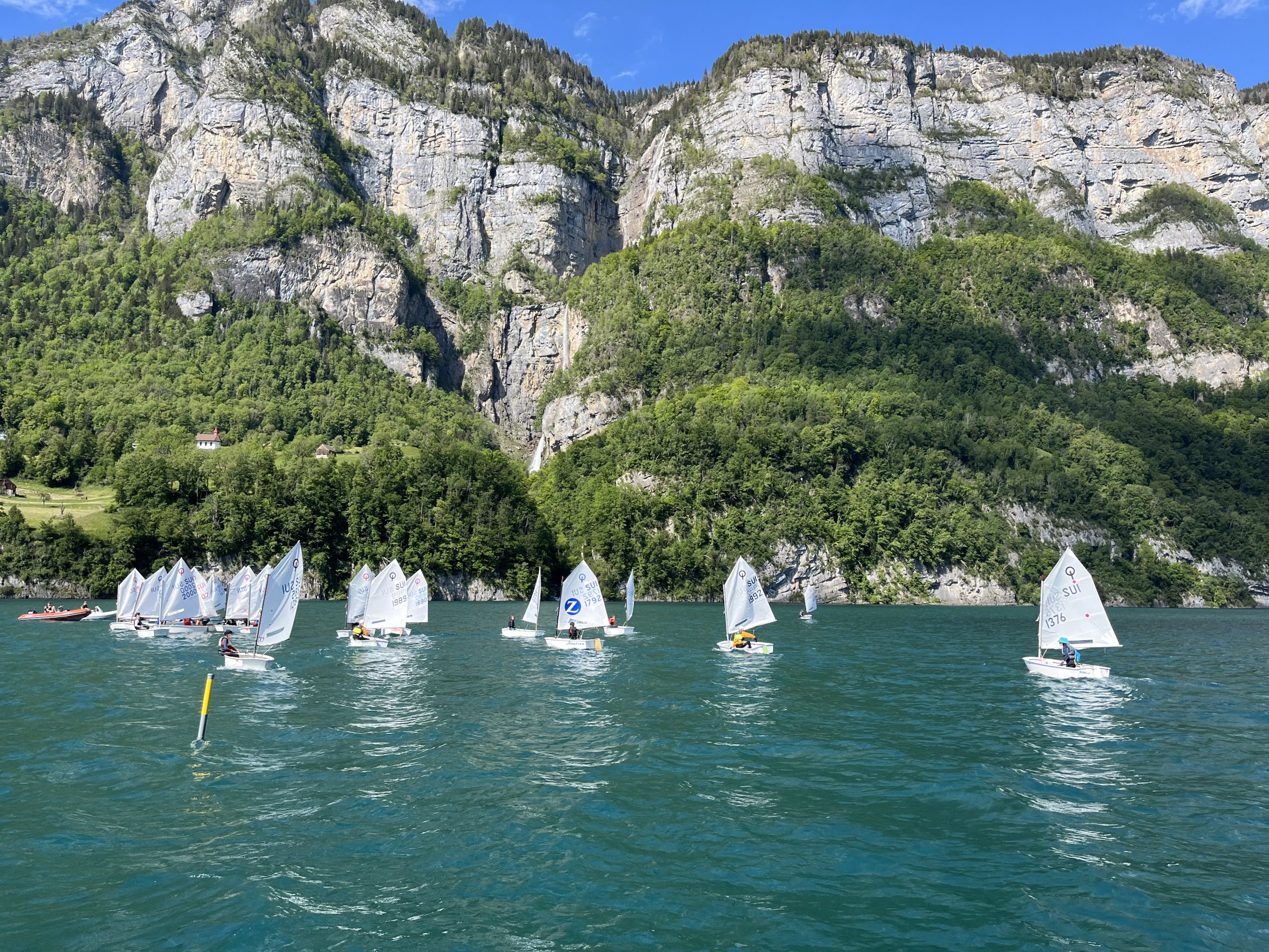 Die Idee des Walensee-Optilagers ist es, diejenigen Kids, die schon mindestens ein Jahr segeln, für die ersten Regio-Regatten vorzubereiten. Da Armin und ich mit unserer Gruppe zuerst an den Basics feilen mussten (hart-am-Wind-segeln, Rollwende, Rollhalse), blieb – nicht zuletzt weil wir auf den sonst verlässlichen Wind am Walensee nicht immer zählen konnten – für das Regattatraining nicht mehr immens viel Zeit.