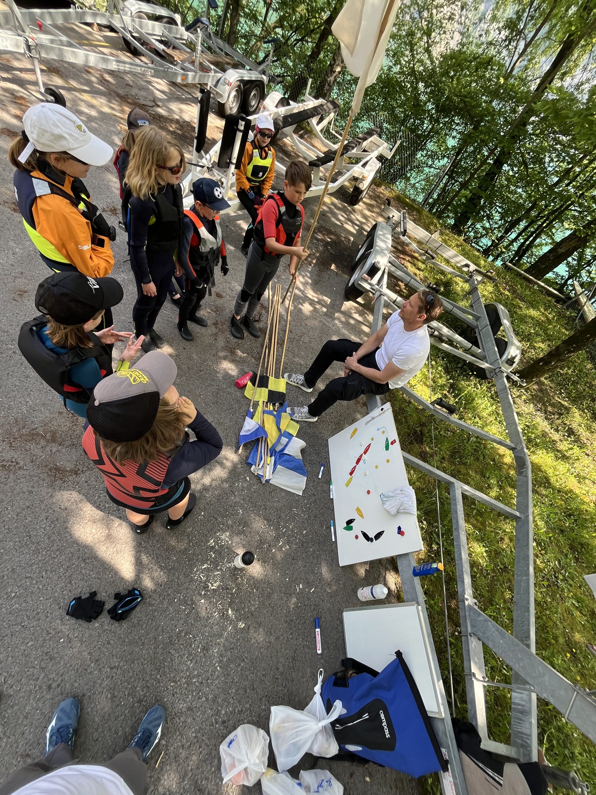 Die Startflaggen – etwas, das einfach eingehämmert werden muss – trainierten wir jeden Tag und die Kids hatten den Ablauf des Starts mindestens theoretisch am Ende des Lagers voll im Griff.