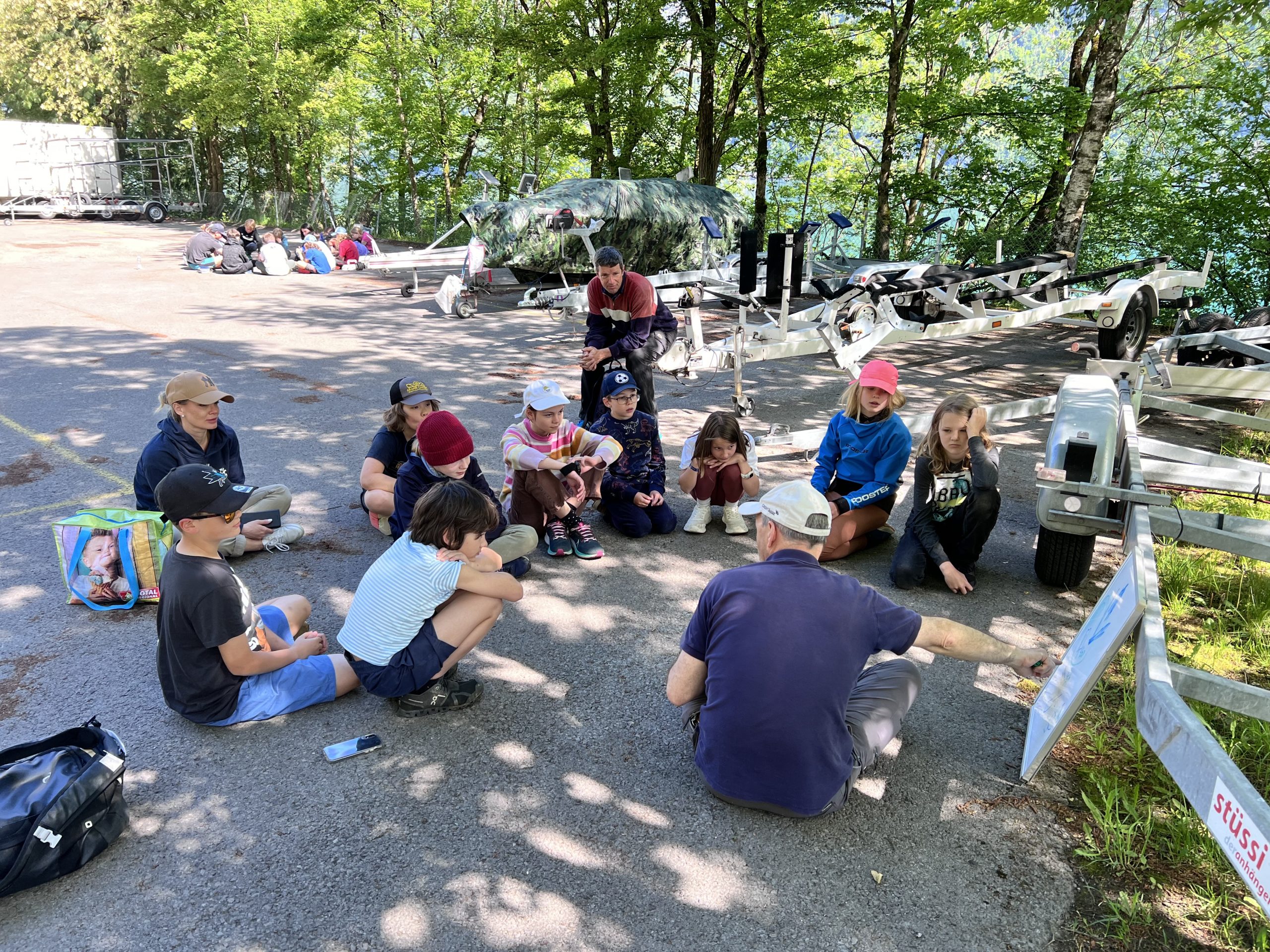 Die Phasen mit wenig Wind nutzten wir nicht nur für Theorieblöcke, sondern machten all das, was es neben dem eigentlichen Segeln auch noch braucht. So müssen Optis mit dem Motorboot geschleppt oder Schoten an irgendwelchen Objekten festgemacht werden können. Zudem haben die Kids gelernt, wie sich er Opti ohne Ruder segelt und darum wie immens wichtig der Gewichtstrimm ist, schliesslich ändert das Boot durch nur minimale Positionsveränderungen sofort den Kurs.
